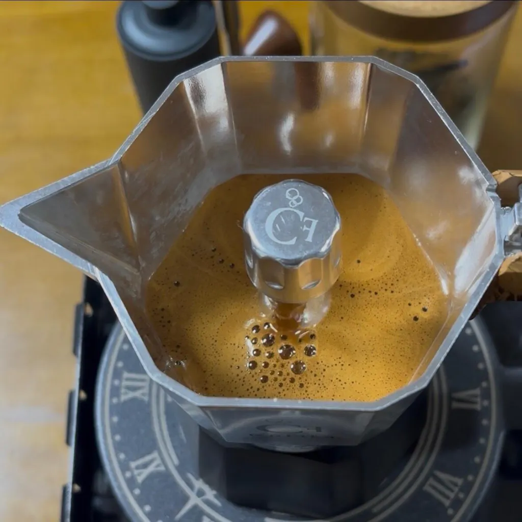 安全弁の改良:一般的なマキネッタは1〜2気圧で排気される安全弁を採用していますが、CoFika Crema Richでは約4.5気圧まで排気を抑える独自設計を採用。高い圧力をしっかり保持することで、抽出時のクレマ形成と濃厚な味わいを最大限に引き出します。