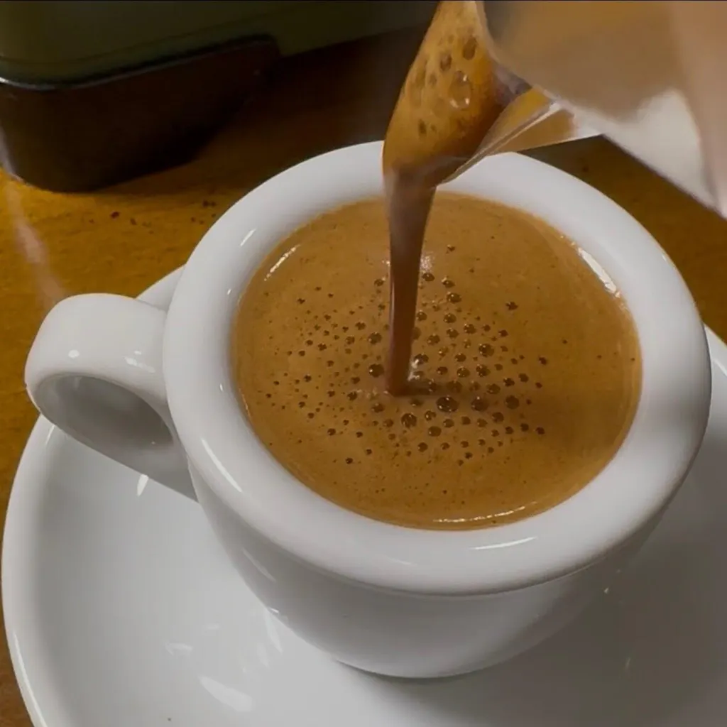 一般的なマキネッタでは、圧力が弱くクレマ(泡の層)がほとんど出ませんが、